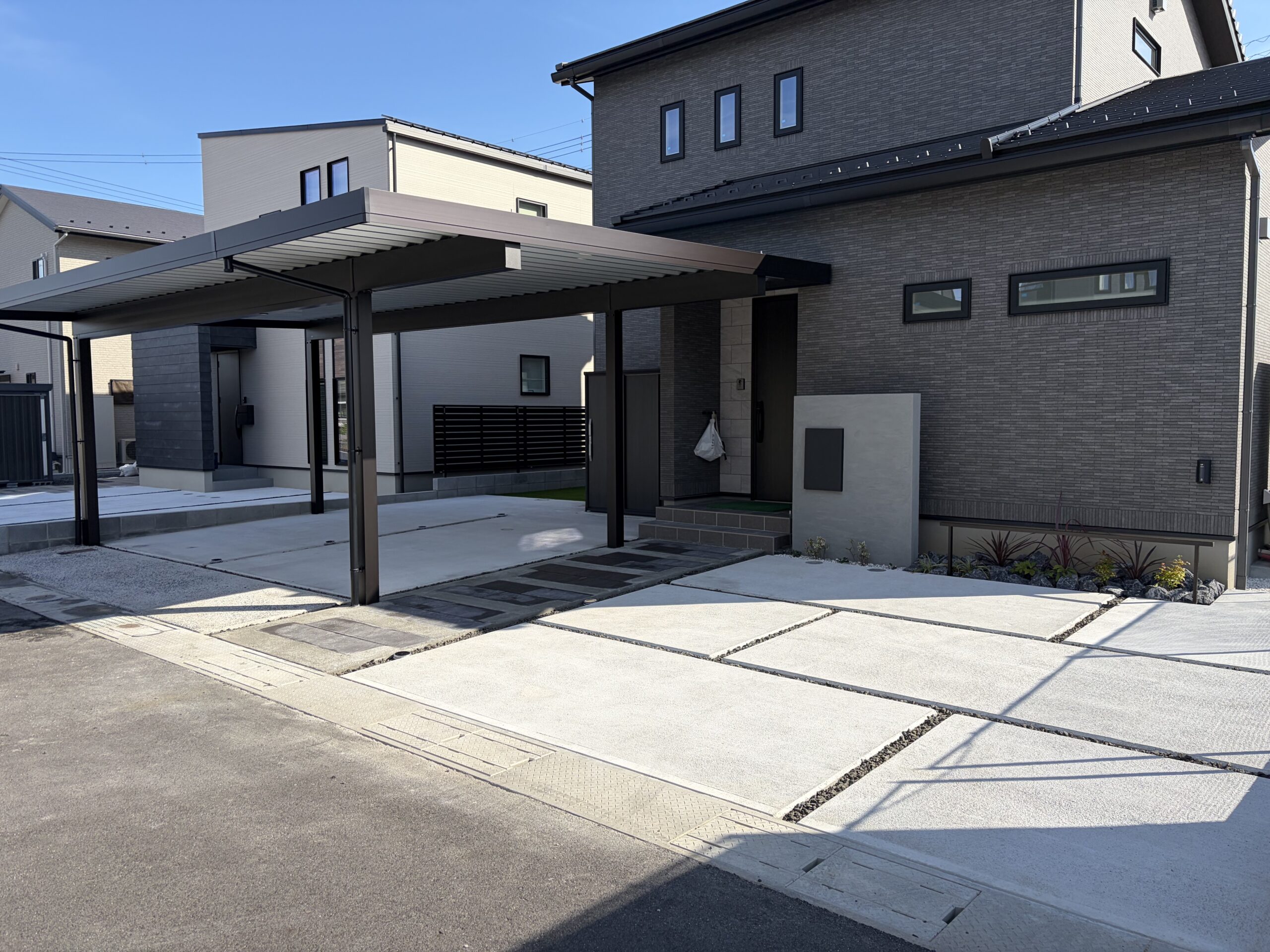 出雲市で人気の外構デザイン術|カーポートと調和する美しいアプローチ空間